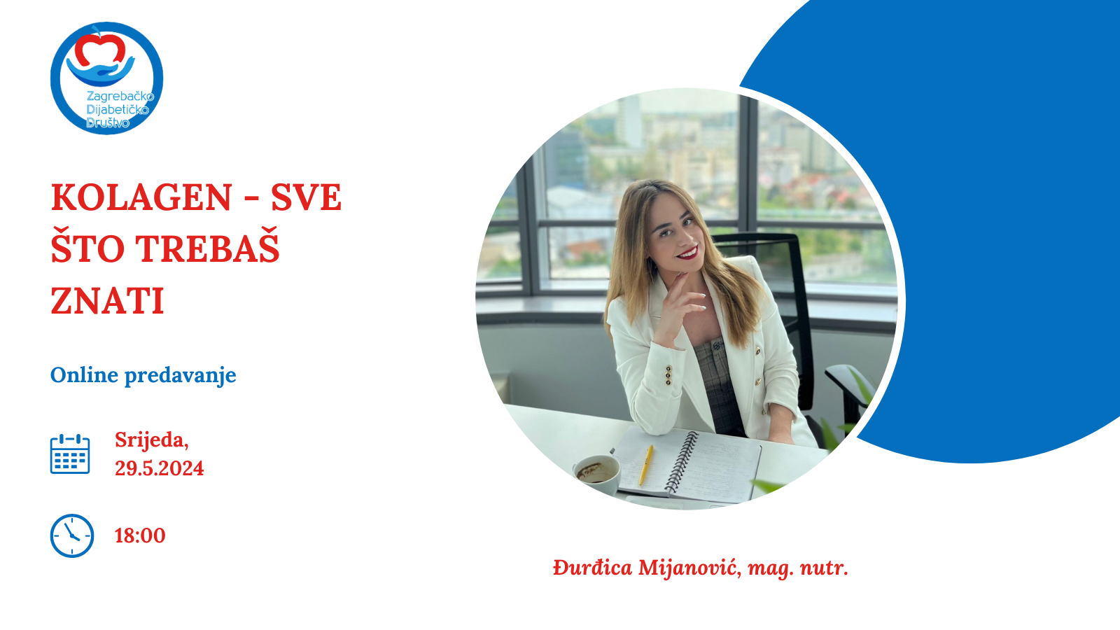 Online nutricionističko predavanje s Đurđicom Mijanović, mag. nutr. Veliko zadovoljstvo nam je pozvati vas na predavanje pod nazivom “Kolagen – sve što trebate znati” koje će održati Đurđica Mijanović, mag. nutr. u srijedu 29. svibnja u 18 sati. Na predavanju će nutricionistica